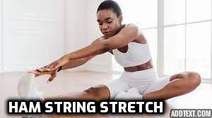 Hamstring Stretch: Sit on the ground, extend one leg, and reach for your toes.